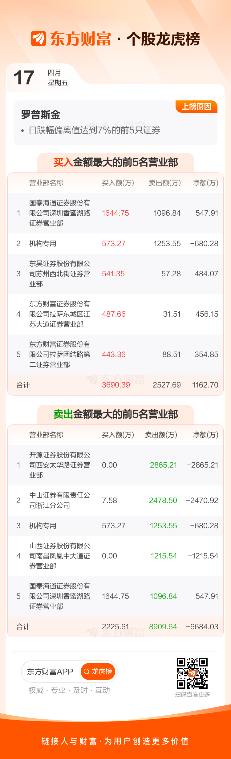 罗普斯金(002333)龙虎榜数据(04-17)