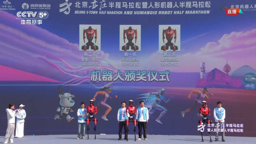 根据最终公布的结果,齐天大圣队、雷霆闪电队与星火燎原队分获冠、亚、季军,净用时分别为50分26秒、50分56秒和53分01秒。令人瞩目的是,排名前三的机器人成绩均大幅超越了目前人类半程马拉松世界纪录。