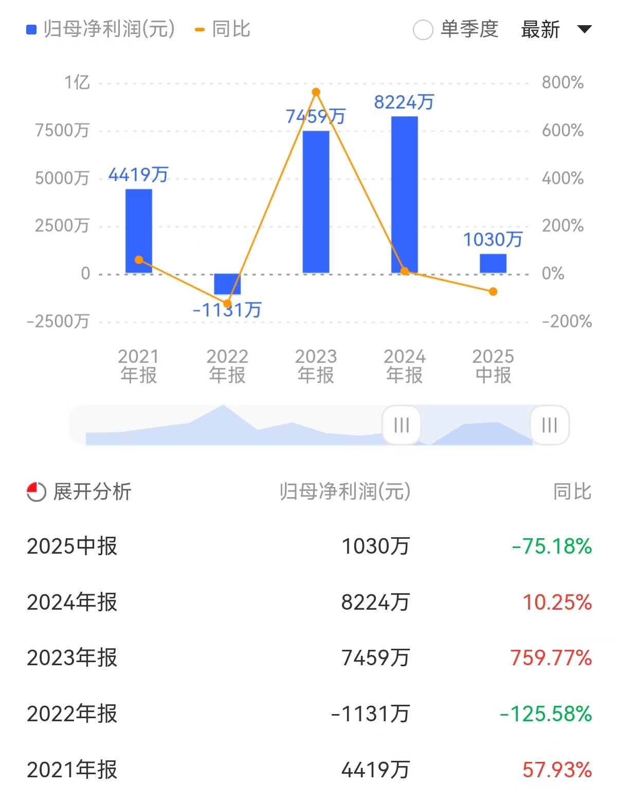 近年来,汇元科技的业绩波动幅度较大。同花顺数据显示,2021年至2024年,汇元科技分别实现营收1.32亿元、1.21亿元、2.48亿元、2.24亿元,同期归母净利润分别为4419万元、-1131万元、7459万元、8224万元。