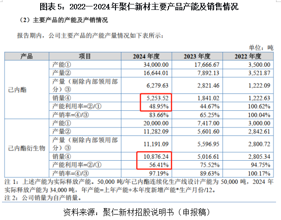 据2025年度报告,2025年聚仁新材己内酯、己内酯衍生物的产能利用率分别达到69.83%和84.00%,可见该公司的己内酯产品仍有部分闲置产能。