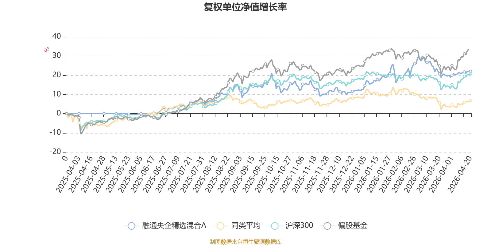 截至4月20日,融通央企精选混合A近三个月复权单位净值增长率为2.51%,位于同类可比基金2/16;近半年复权单位净值增长率为9.23%,位于同类可比基金2/16;近一年复权单位净值增长率为22.05%,位于同类可比基金3/16。