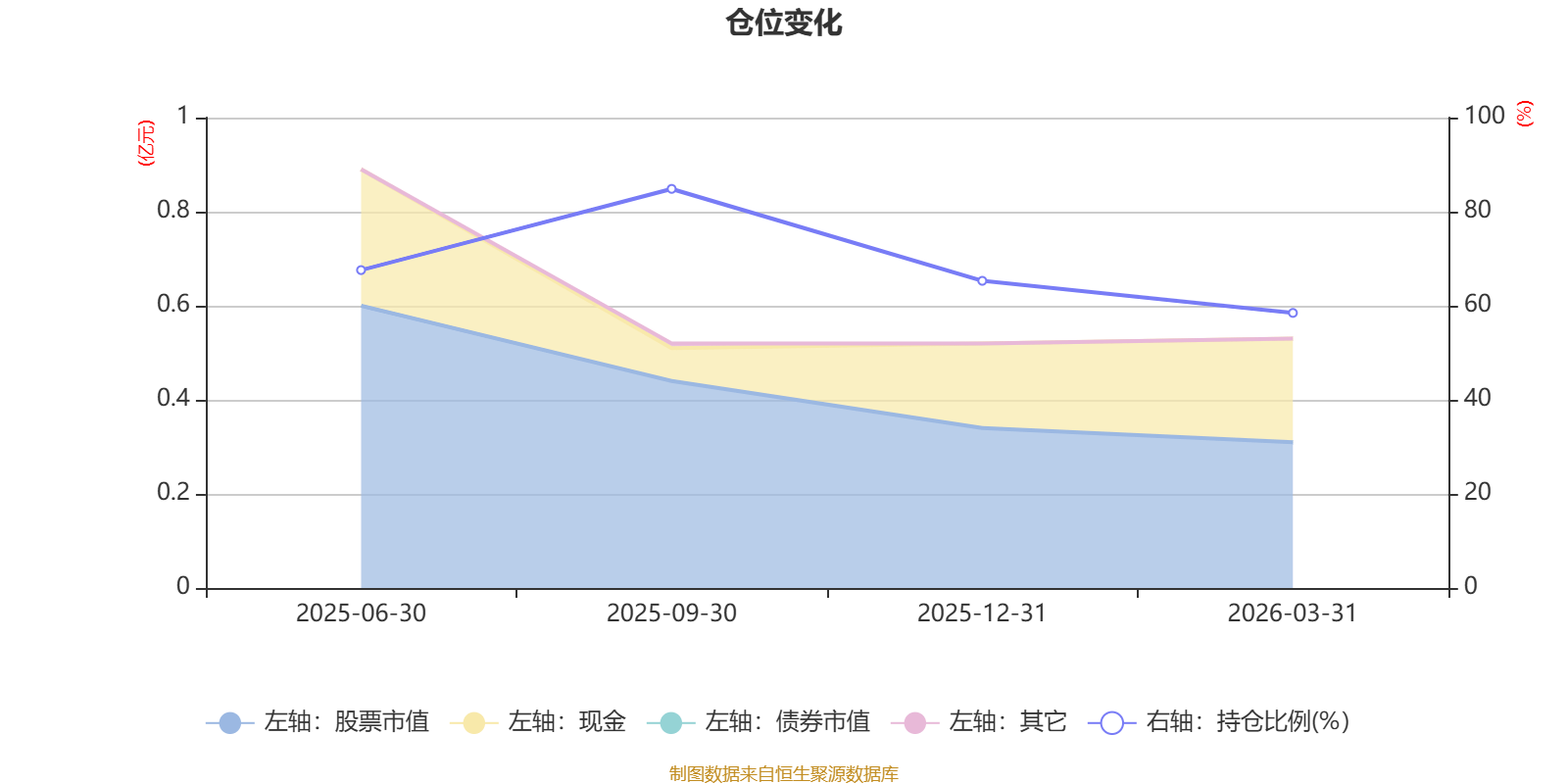 据定期报告数据统计,成立以来平均股票仓位为69.05%,同类平均为86.88%。2025年三季度末基金达到84.85%的最高仓位,2026年一季度末最低,为58.48%。