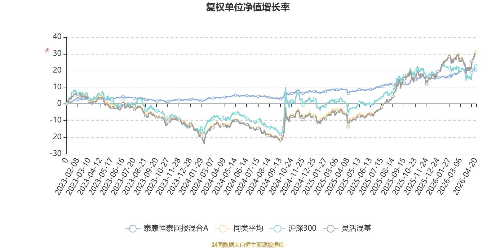 截至4月20日,泰康恒泰回报混合A近三个月复权单位净值增长率为3.42%,位于同类可比基金413/1287;近半年复权单位净值增长率为5.68%,位于同类可比基金799/1286;近一年复权单位净值增长率为12.13%,位于同类可比基金1004/1286;近三年复权单位净值增长率为16.53%,位于同类可比基金660/1286。