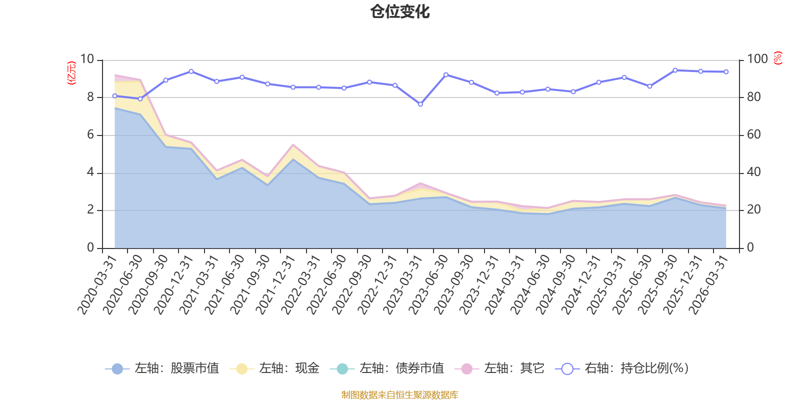 据定期报告数据统计,近三年平均股票仓位为88.38%,同类平均为88.31%。2025年三季度末基金达到94.55%的最高仓位,2023年一季度末最低,为76.52%。