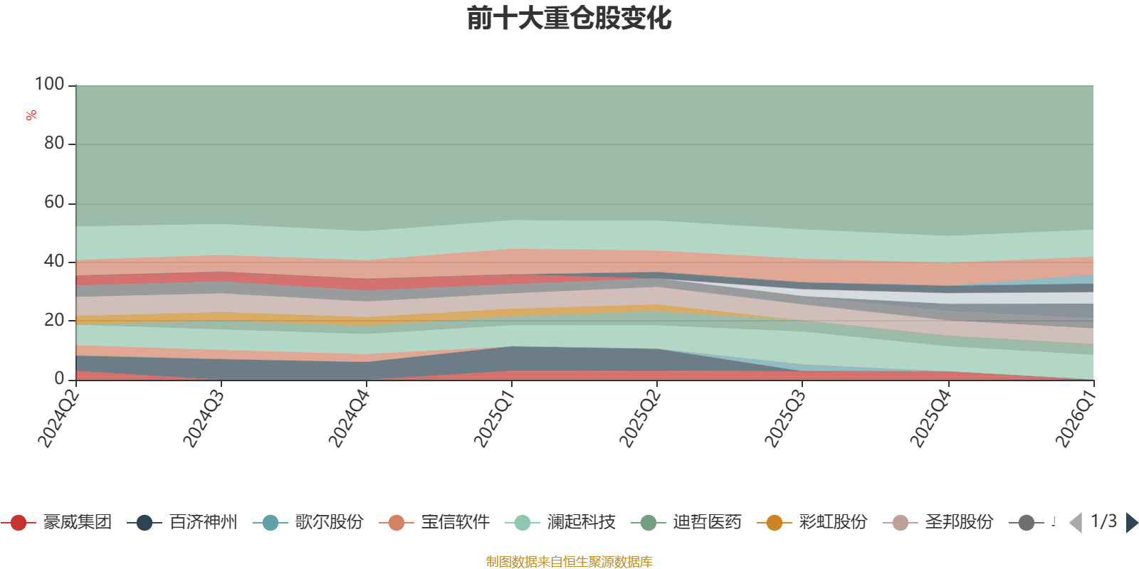 截至2026年一季度末,基金十大重仓股分别是北方华创、澜起科技、峰岹科技、圣邦股份、金海通、中科飞测、迪哲医药、卓胜微、赛微微电、思瑞浦。