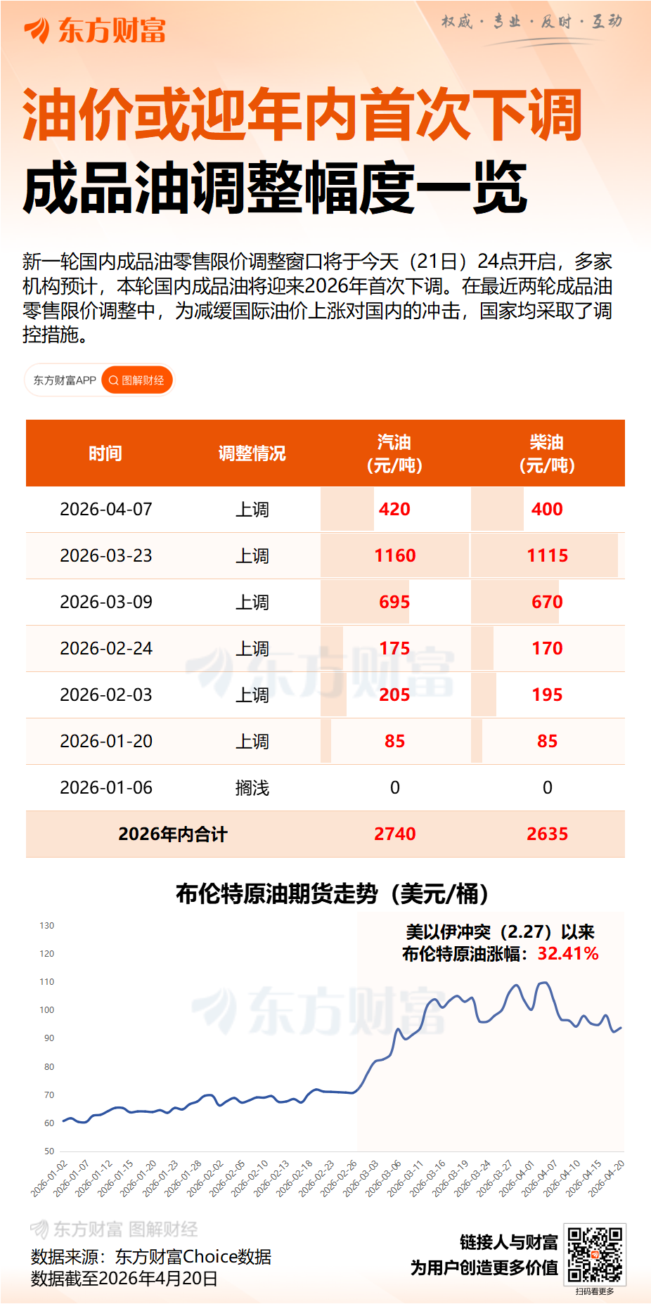 新一轮国内成品油零售限价调整窗口将于今天(21日)24点开启,多家机构预计,本轮国内成品油将迎来2026年首次下调。在最近两轮成品油零售限价调整中,为减缓国际油价上涨对国内的冲击,国家均采取了调控措施。