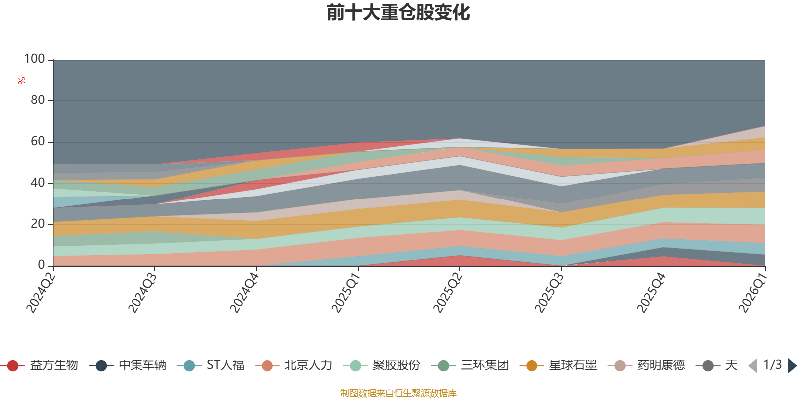 截至2026年一季度末,基金十大重仓股分别是北京人力、聚胶股份、星球石墨、赛特新材、天益医疗、奥泰生物、国邦医药、ST人福、呈和科技、中集车辆。