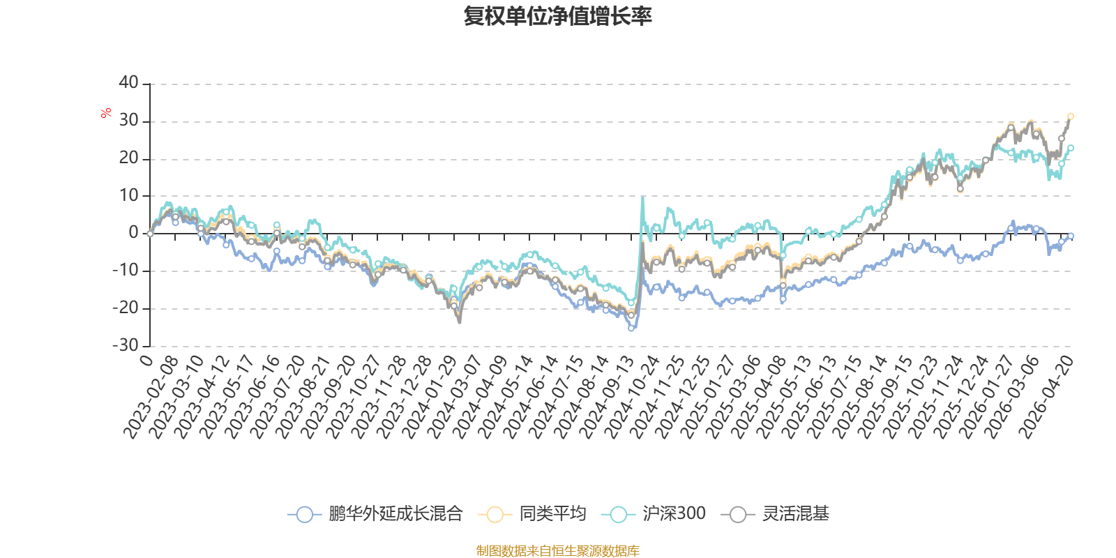 截至4月20日,鹏华外延成长混合近三个月复权单位净值增长率为-0.76%,位于同类可比基金861/1287;近半年复权单位净值增长率为4.43%,位于同类可比基金856/1286;近一年复权单位净值增长率为16.71%,位于同类可比基金929/1286;近三年复权单位净值增长率为2.91%,位于同类可比基金989/1286。