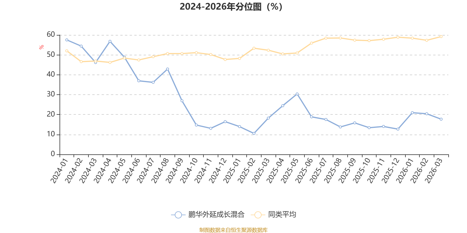 通过所选区间该基金净值增长率分位图,可以观察该基金与同类基金业绩比较情况。图为坐标原点到区间内某时点的净值增长率在同类基金中的分位数。