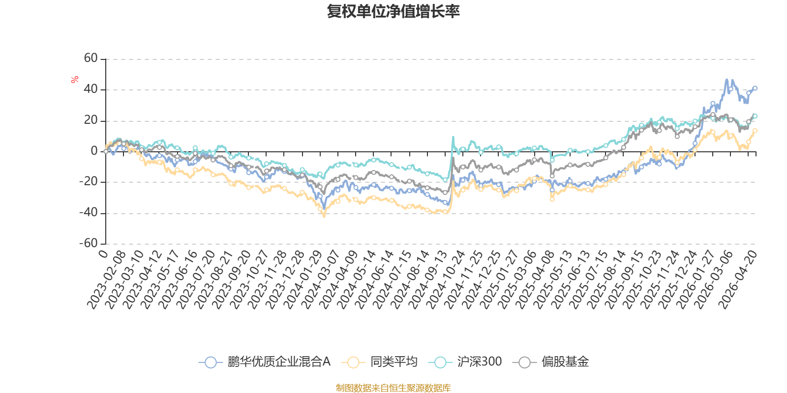 截至4月20日,鹏华优质企业混合A近三个月复权单位净值增长率为12.65%,位于同类可比基金11/100;近半年复权单位净值增长率为52.15%,位于同类可比基金2/100;近一年复权单位净值增长率为81.09%,位于同类可比基金14/99;近三年复权单位净值增长率为46.43%,位于同类可比基金15/76。