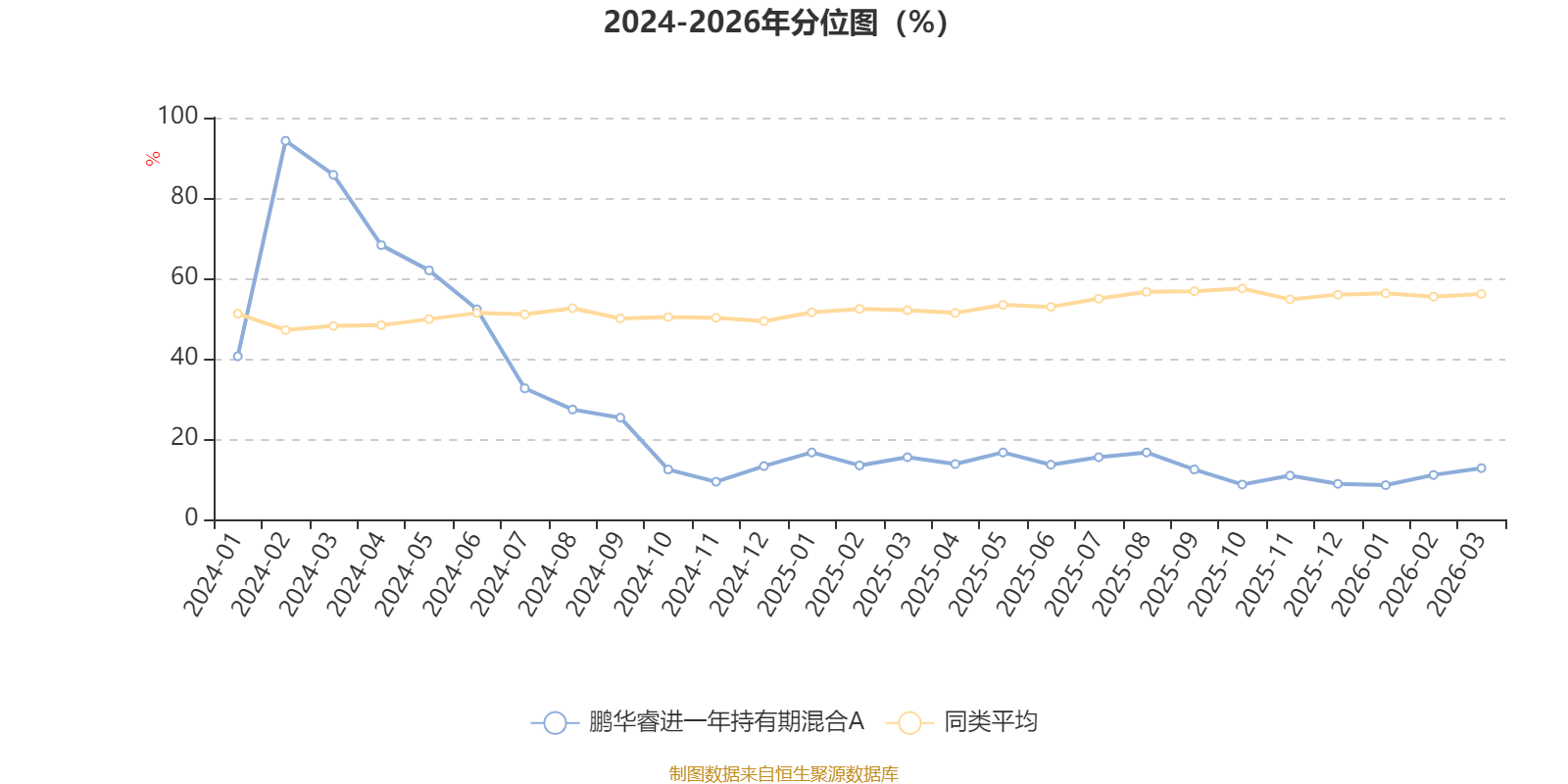 通过所选区间该基金净值增长率分位图,可以观察该基金与同类基金业绩比较情况。图为坐标原点到区间内某时点的净值增长率在同类基金中的分位数。