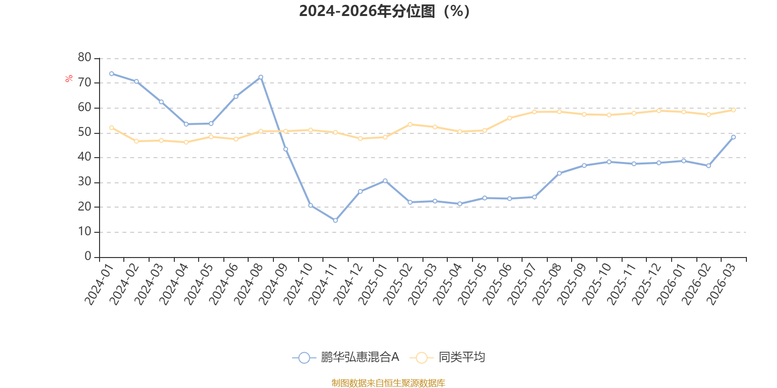 通过所选区间该基金净值增长率分位图,可以观察该基金与同类基金业绩比较情况。图为坐标原点到区间内某时点的净值增长率在同类基金中的分位数。