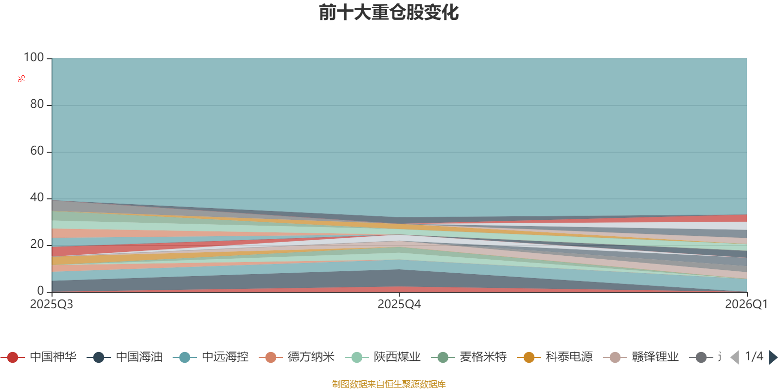 截至2026年一季度末,基金十大重仓股分别是中远海控、中国人寿、迈为股份、裕同科技、胜宏科技、药明康德、赛特新材、赣锋锂业、迈威生物、华盛锂电。