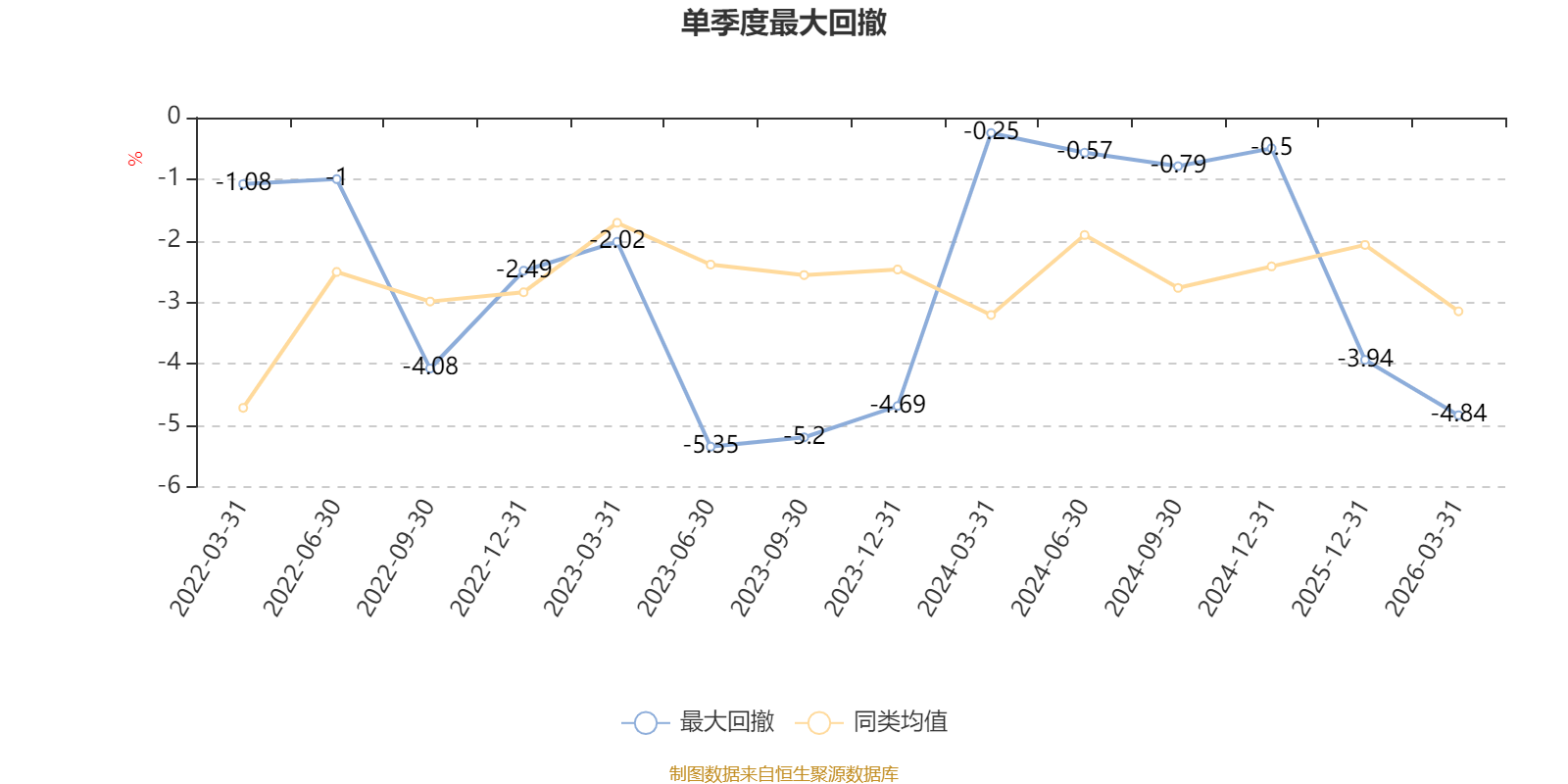 截至4月20日,基金近三年最大回撤为10.7%,同类可比基金排名456/563。单季度最大回撤出现在2023年二季度,为5.35%。