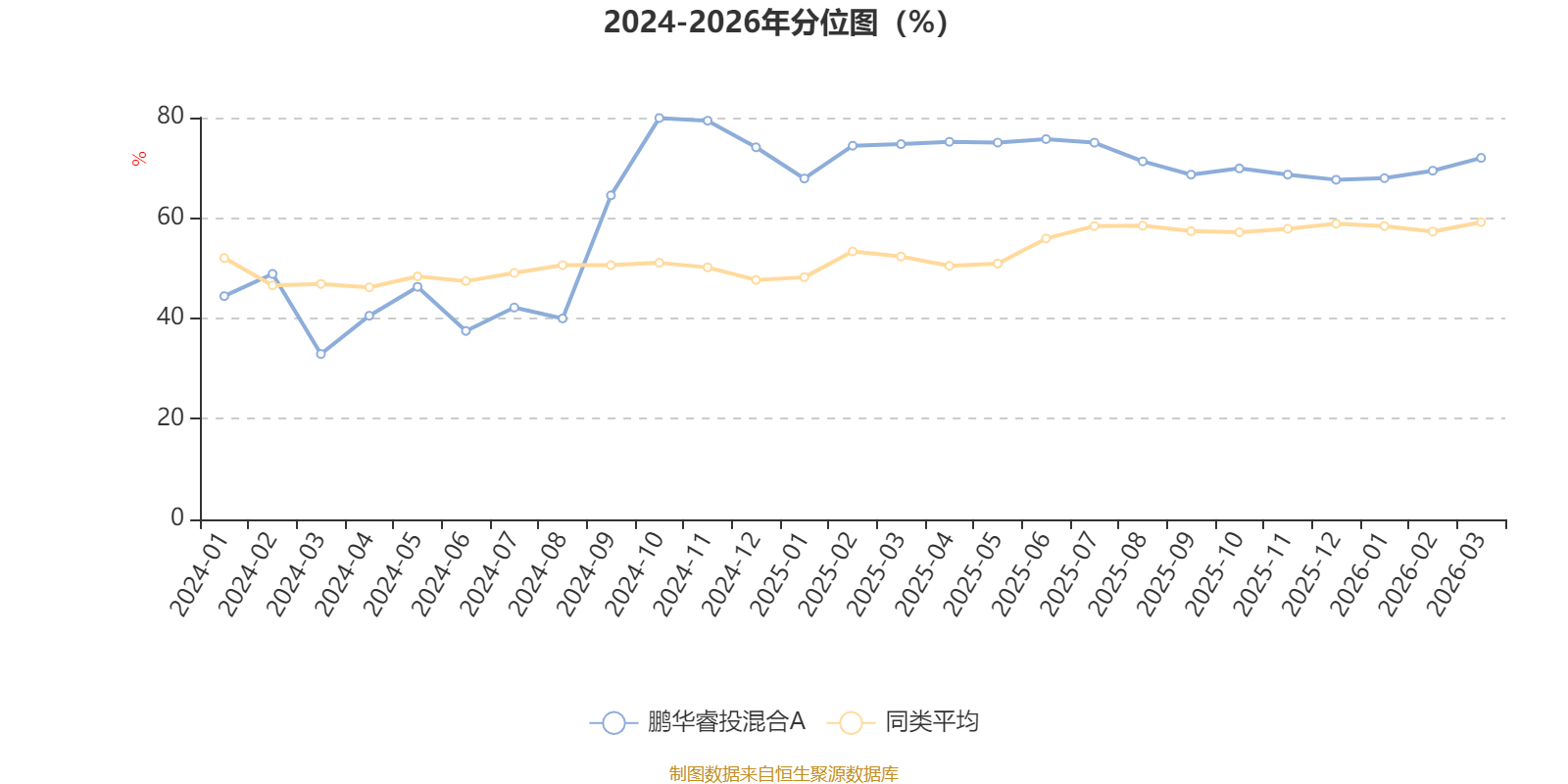 通过所选区间该基金净值增长率分位图,可以观察该基金与同类基金业绩比较情况。图为坐标原点到区间内某时点的净值增长率在同类基金中的分位数。