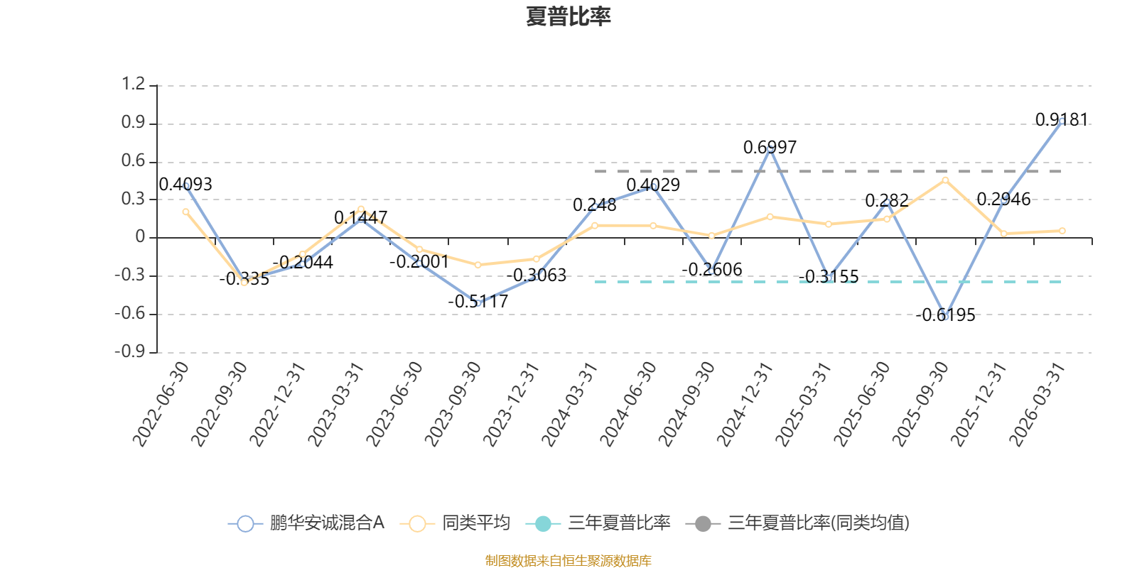 截至3月31日,基金近三年夏普比率为-0.3443,位于同类可比基金534/556。