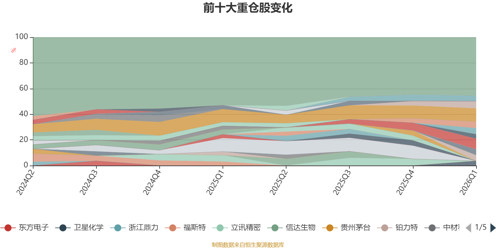 截至2026年一季度末,基金十大重仓股分别是宁德时代、中际旭创、德业股份、信立泰、鼎胜新材、富临精工、中国巨石、生益科技、卫星化学、新宙邦。