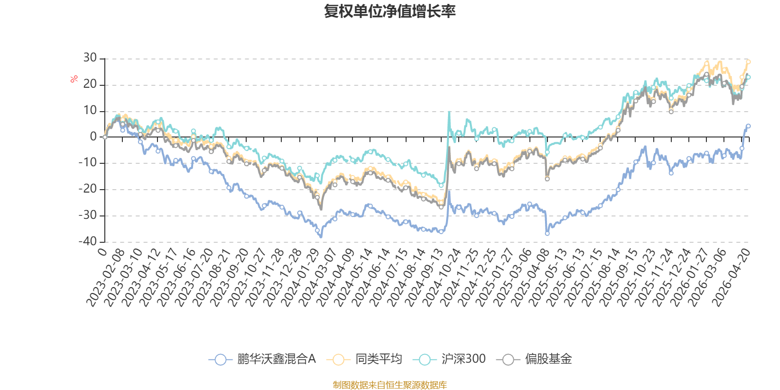 截至4月20日,鹏华沃鑫混合A近三个月复权单位净值增长率为13.29%,位于同类可比基金36/265;近半年复权单位净值增长率为17.37%,位于同类可比基金74/265;近一年复权单位净值增长率为58.40%,位于同类可比基金74/265;近三年复权单位净值增长率为11.27%,位于同类可比基金187/261。