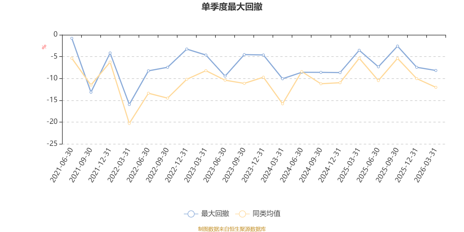 截至4月20日,基金近三年最大回撤为18.3%,同类可比基金排名18/259。单季度最大回撤出现在2022年一季度,为15.96%。