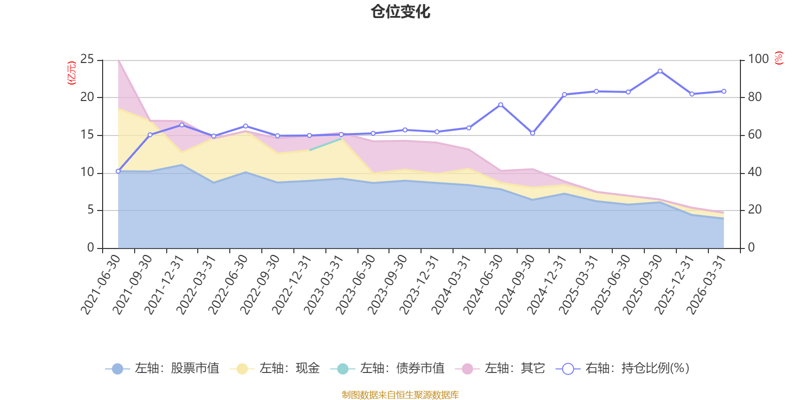 据定期报告数据统计,近三年平均股票仓位为74.54%,同类平均为86.04%。2025年三季度末基金达到94.12%的最高仓位,2021年上半年末最低,为40.93%。
