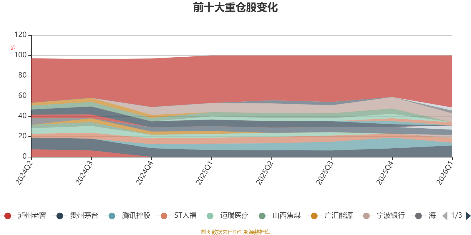 截至2026年一季度末,基金十大重仓股分别是贵州茅台、格力电器、青岛港、ST人福、新宙邦、中国平安、元力股份、宁波银行、腾讯控股、青岛啤酒股份。