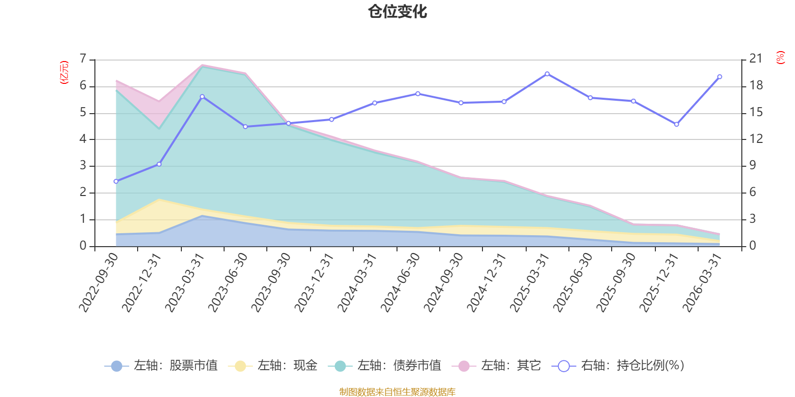 据定期报告数据统计,近三年平均股票仓位为16.04%,同类平均为19.04%。2025年一季度末基金达到19.39%的最高仓位,2022年三季度末最低,为7.31%。