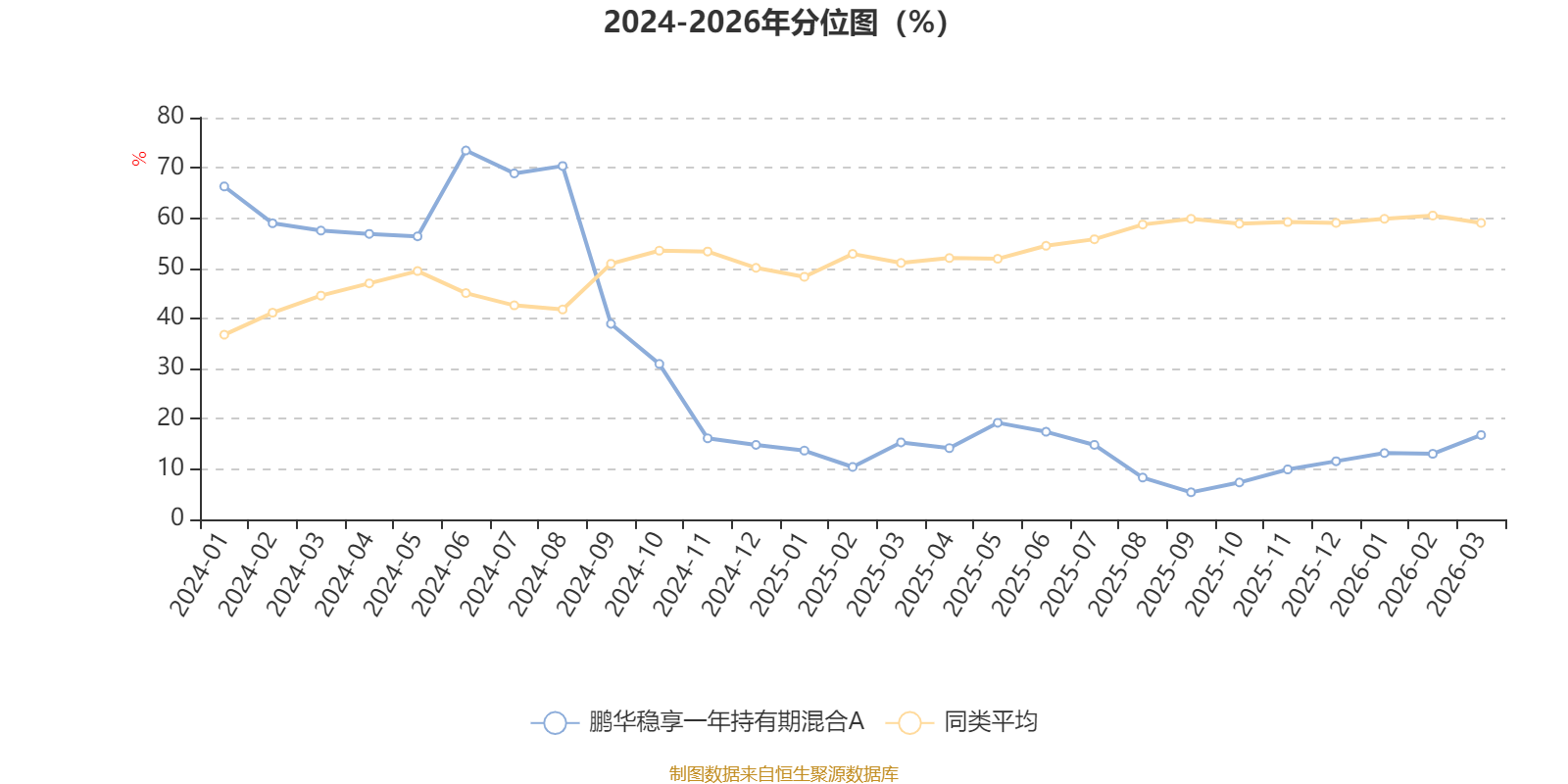 通过所选区间该基金净值增长率分位图,可以观察该基金与同类基金业绩比较情况。图为坐标原点到区间内某时点的净值增长率在同类基金中的分位数。