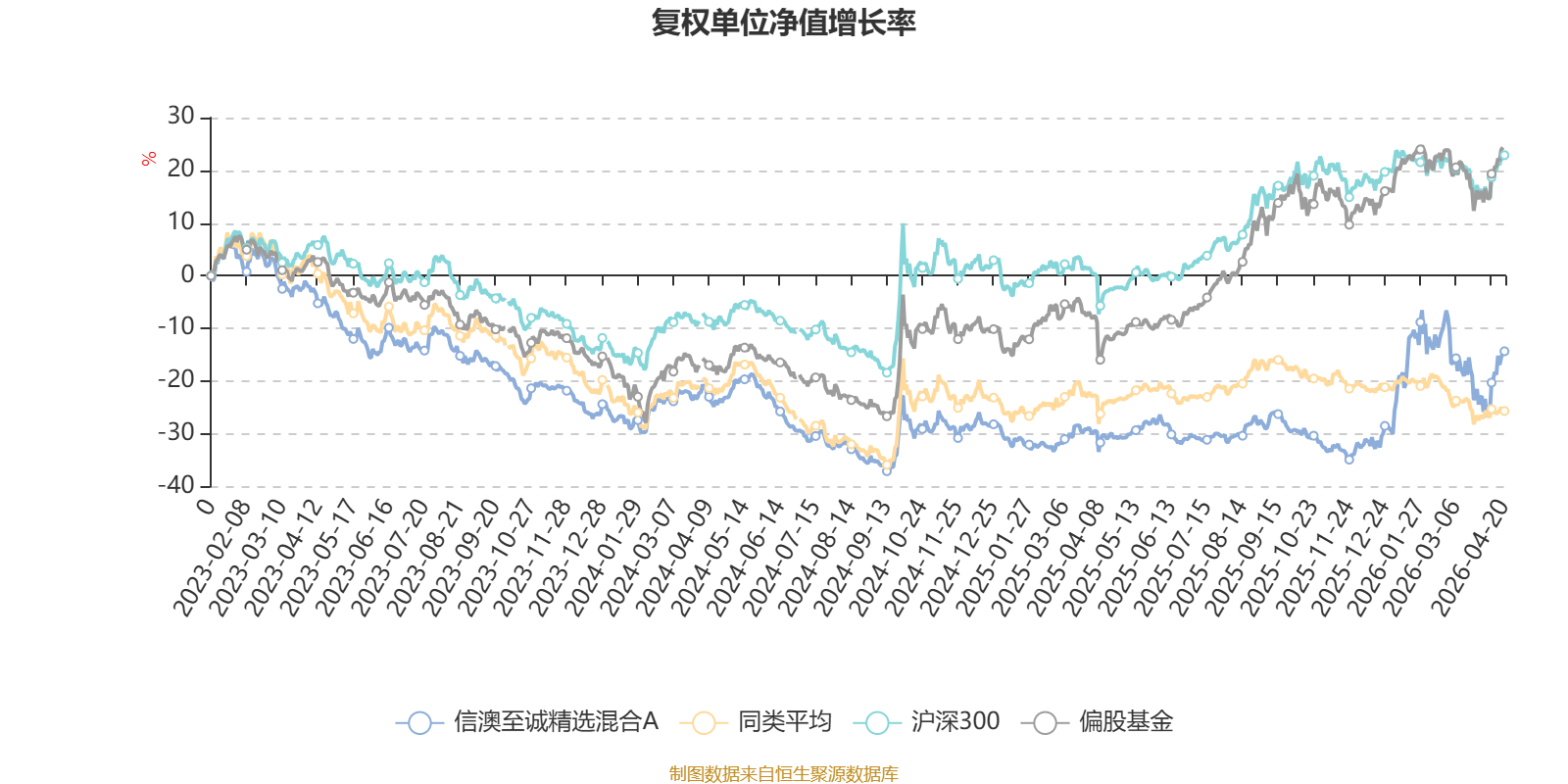 截至4月20日,信澳至诚精选混合A近三个月复权单位净值增长率为-3.58%,位于同类可比基金8/85;近半年复权单位净值增长率为23.66%,位于同类可比基金2/85;近一年复权单位净值增长率为23.61%,位于同类可比基金6/85;近三年复权单位净值增长率为-9.16%,位于同类可比基金22/76。