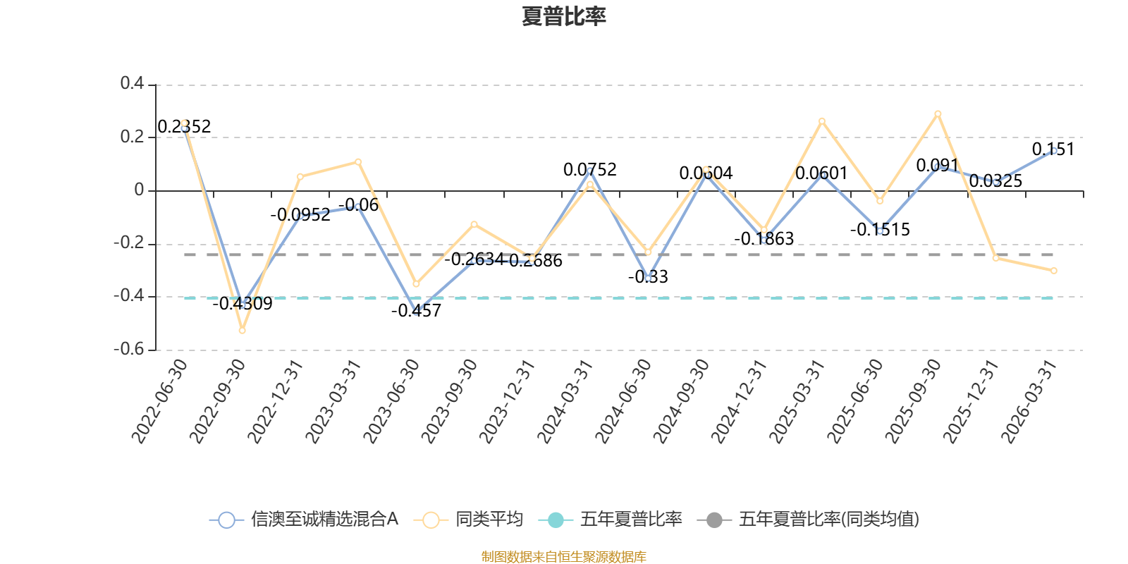 截至3月31日,基金近三年夏普比率为-0.1005,位于同类可比基金37/75。