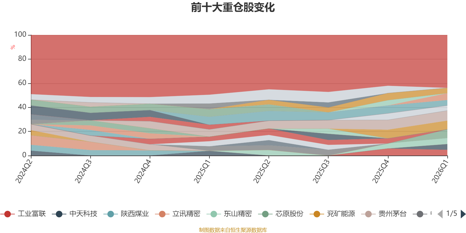 截至2026年一季度末,基金十大重仓股分别是亨通光电、芯原股份、新易盛、协创数据、东山精密、中天科技、工业富联、新大陆、生益科技、英维克。