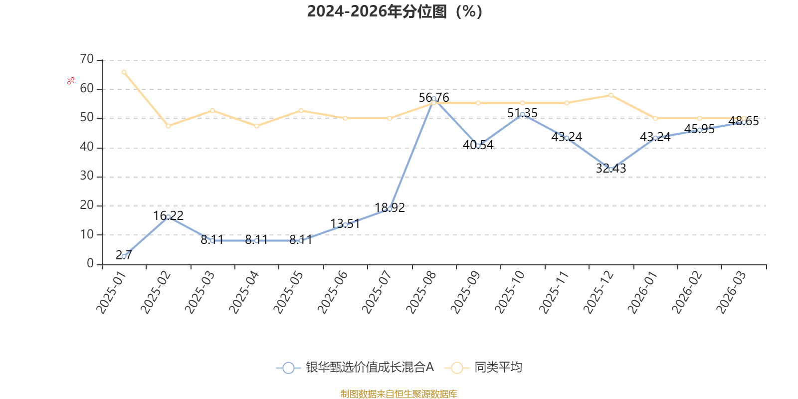 通过所选区间该基金净值增长率分位图,可以观察该基金与同类基金业绩比较情况。图为坐标原点到区间内某时点的净值增长率在同类基金中的分位数。
