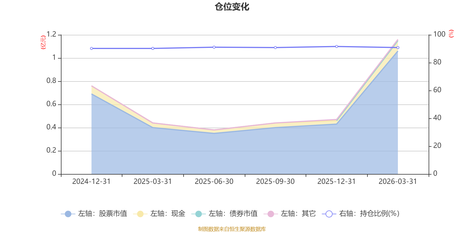 据定期报告数据统计,基金股票仓位长期保持较高水平,成立以来平均股票仓位为90.8%,同类平均为86.18%。2025年末基金达到91.61%的最高仓位,2024年末最低,为90.2%。