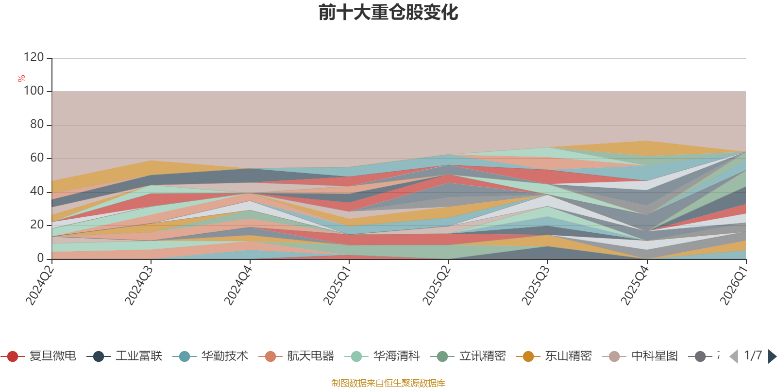 截至2026年一季度末,基金十大重仓股分别是新易盛、中际旭创、天孚通信、东山精密、光库科技、东阳光、沪电股份、芯原股份、华勤技术、灿芯股份。