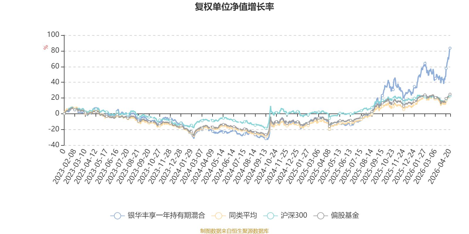 截至4月20日,银华丰享一年持有期混合近三个月复权单位净值增长率为17.94%,位于同类可比基金45/621;近半年复权单位净值增长率为41.57%,位于同类可比基金24/621;近一年复权单位净值增长率为118.30%,位于同类可比基金29/618;近三年复权单位净值增长率为73.04%,位于同类可比基金47/560。