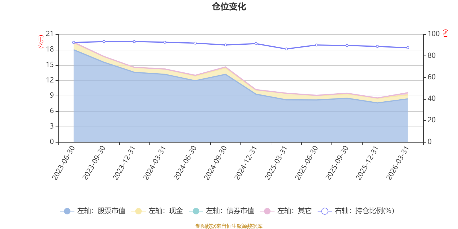 据定期报告数据统计,近三年平均股票仓位为90.65%,同类平均为86.03%。2023年末基金达到93.31%的最高仓位,2025年一季度末最低,为86.45%。