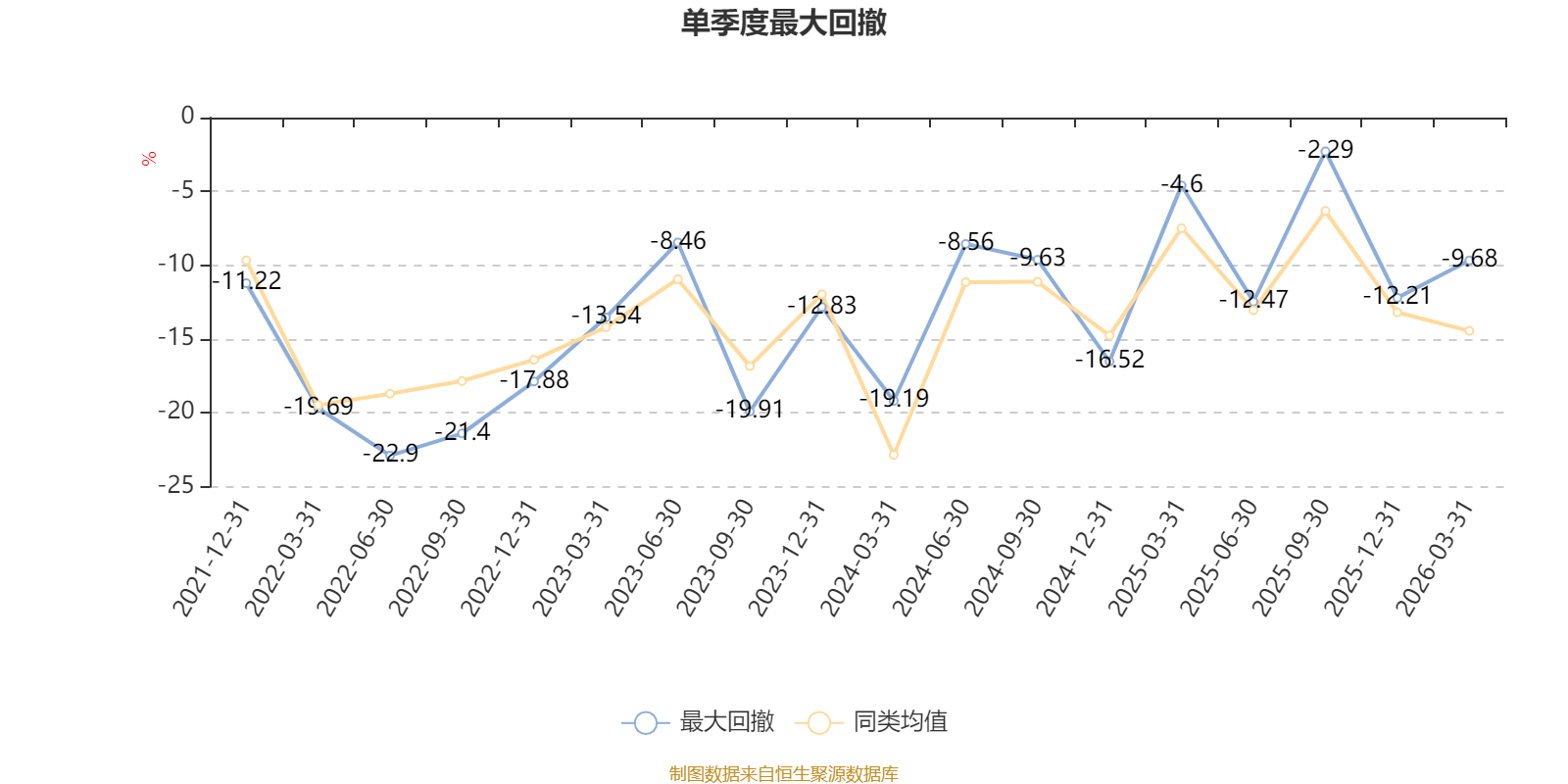 截至4月20日,基金近三年最大回撤为38.57%,同类可比基金排名41/71。单季度最大回撤出现在2022年二季度,为22.9%。