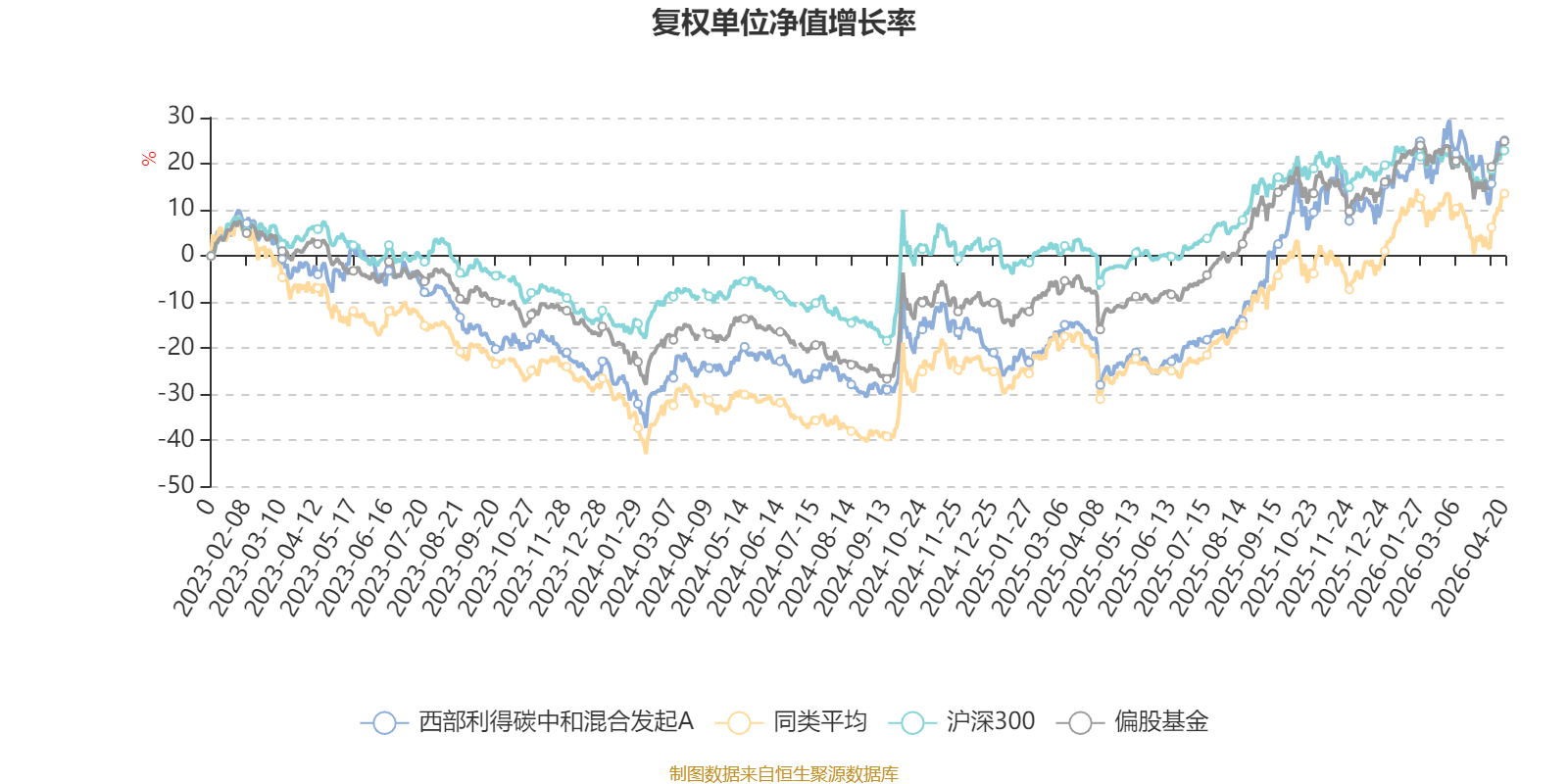 截至4月20日,西部利得碳中和混合发起A近三个月复权单位净值增长率为5.43%,位于同类可比基金43/100;近半年复权单位净值增长率为17.60%,位于同类可比基金37/100;近一年复权单位净值增长率为67.95%,位于同类可比基金21/99;近三年复权单位净值增长率为31.51%,位于同类可比基金27/76。