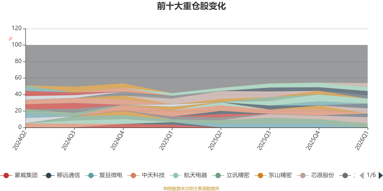 截至2026年一季度末,基金十大重仓股分别是芯原股份、新和成、英维克、英科医疗、芯碁微装、芯源微、立讯精密、恩捷股份、山金国际、兖矿能源。