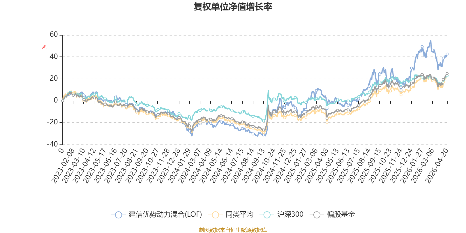 截至4月20日,建信优势动力混合(LOF)近三个月复权单位净值增长率为-0.60%,位于同类可比基金375/621;近半年复权单位净值增长率为23.09%,位于同类可比基金104/621;近一年复权单位净值增长率为46.13%,位于同类可比基金252/618;近三年复权单位净值增长率为32.88%,位于同类可比基金193/560。