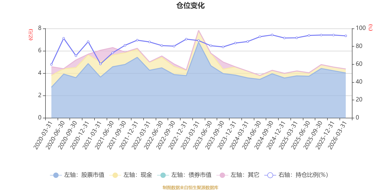 据定期报告数据统计,近三年平均股票仓位为88.44%,同类平均为85.8%。2024年三季度末基金达到92.8%的最高仓位,2020年一季度末最低,为59.81%。