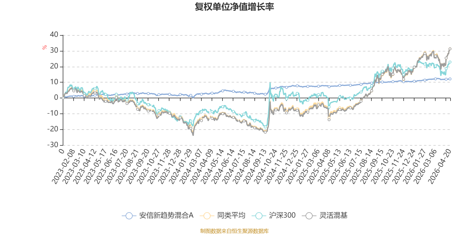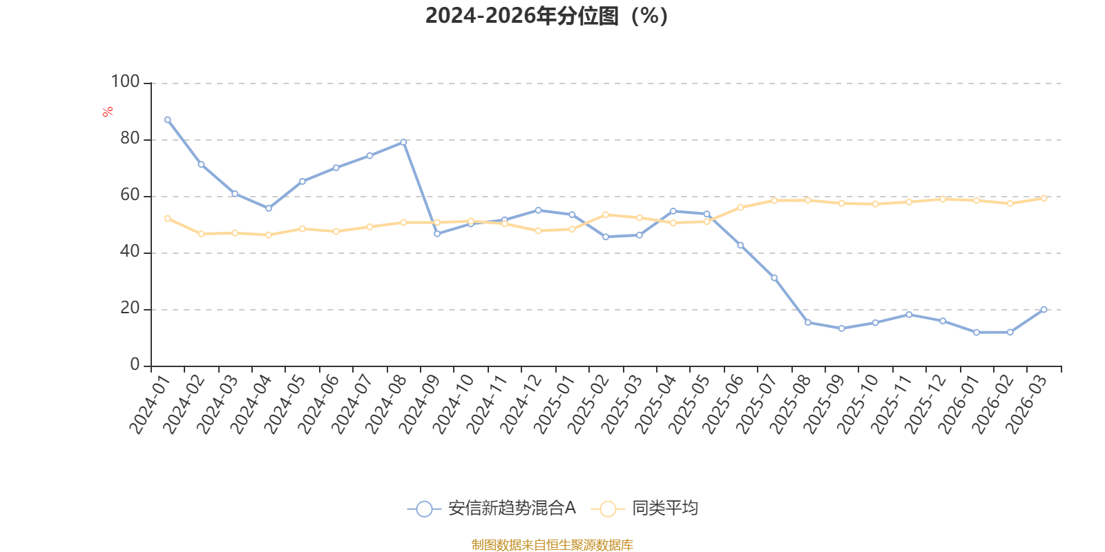 截至4月20日,安信新趋势混合A近三个月复权单位净值增长率为0.74%,位于同类可比基金666/1287;近半年复权单位净值增长率为1.73%,位于同类可比基金1012/1286;近一年复权单位净值增长率为4.30%,位于同类可比基金1198/1286;近三年复权单位净值增长率为9.97%,位于同类可比基金824/1286。
