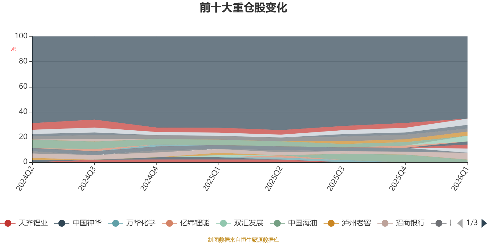 基金管理人在一季报中表示,我们的股票投资组合是建立在非预测性决策的基础上。我们筛选标的时重点关注以下要素:1、经营角度,可见度高、扎实的自由现金流;2、估值角度,不错的隐含回报率;3、组合角度,以低相关性为锚,扩充利润来源;4、尾部风险控制,在符合前三条的前提下,努力在组合中纳入对极端情形的缓冲资产。我们的权益持仓,包含部分原油、煤炭个股,配置的出发点,是各公司强健的资产负债表、虽有波动但预期稳定的自由现金流、低估值下可观的隐含回报率,在此之上,价格波动带来了隐形的期权价值。地缘事件导致油价大涨,能源类股票同步反应,缓冲了其他股票的跌幅。这一“期权”兑现过程让组合具有一定的反脆弱性。
