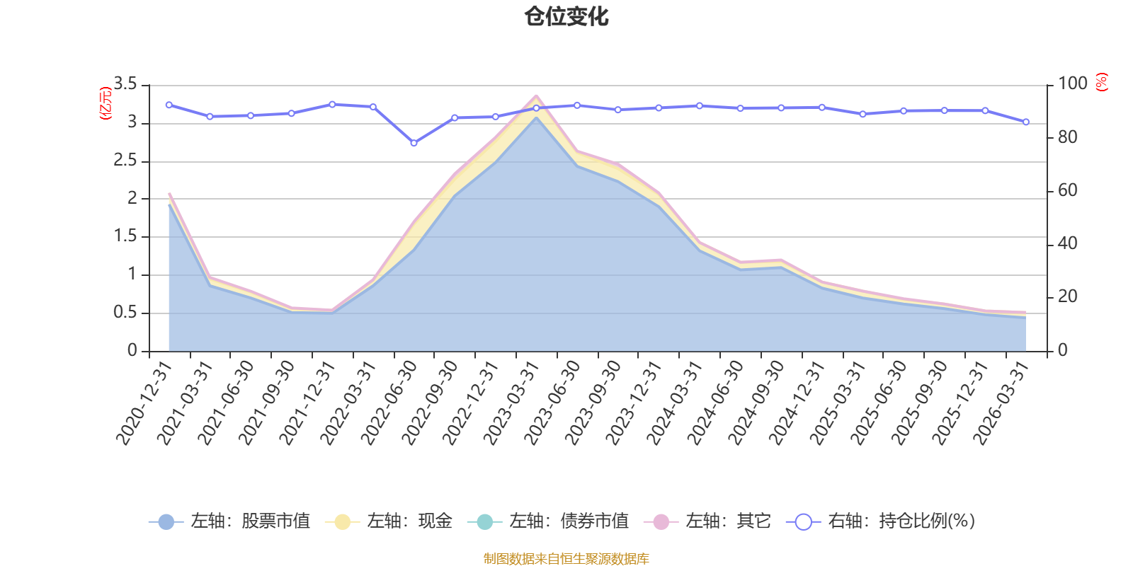 据定期报告数据统计,近三年平均股票仓位为90.57%,同类平均为86.67%。2021年末基金达到92.68%的最高仓位,2022年上半年末最低,为78.19%。