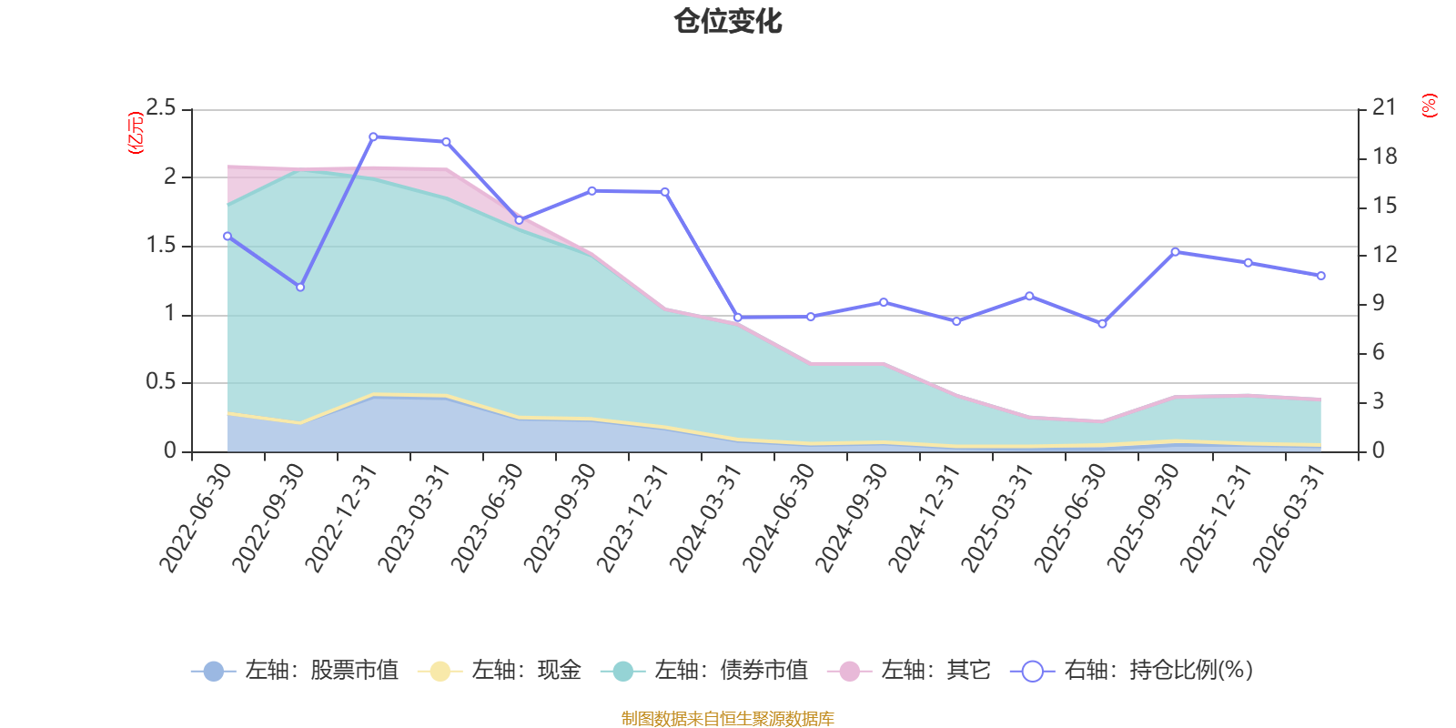 据定期报告数据统计,近三年平均股票仓位为10.99%,同类平均为19.03%。2022年末基金达到19.31%的最高仓位,2025年上半年末最低,为7.85%。