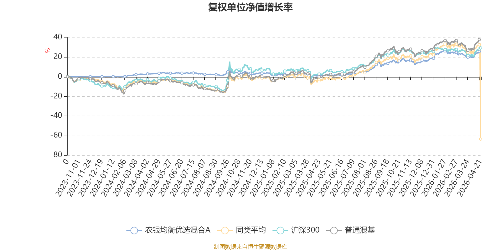 截至4月20日,农银均衡优选混合A近三个月复权单位净值增长率为0.39%,位于同类可比基金58/134;近半年复权单位净值增长率为9.84%,位于同类可比基金62/134;近一年复权单位净值增长率为24.39%,位于同类可比基金76/134。