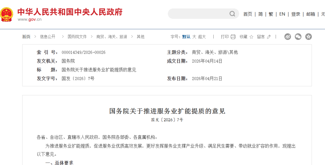聚焦服务业扩能提质,国务院发文。