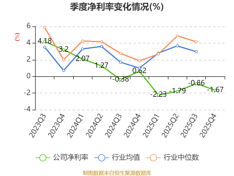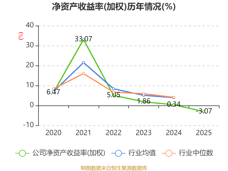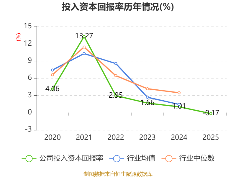数据显示,2025年公司加权平均净资产收益率为-3.07%,较上年同期下降3.41个百分点。公司2025年投入资本回报率为-0.17%,较上年同期下降1.18个百分点。