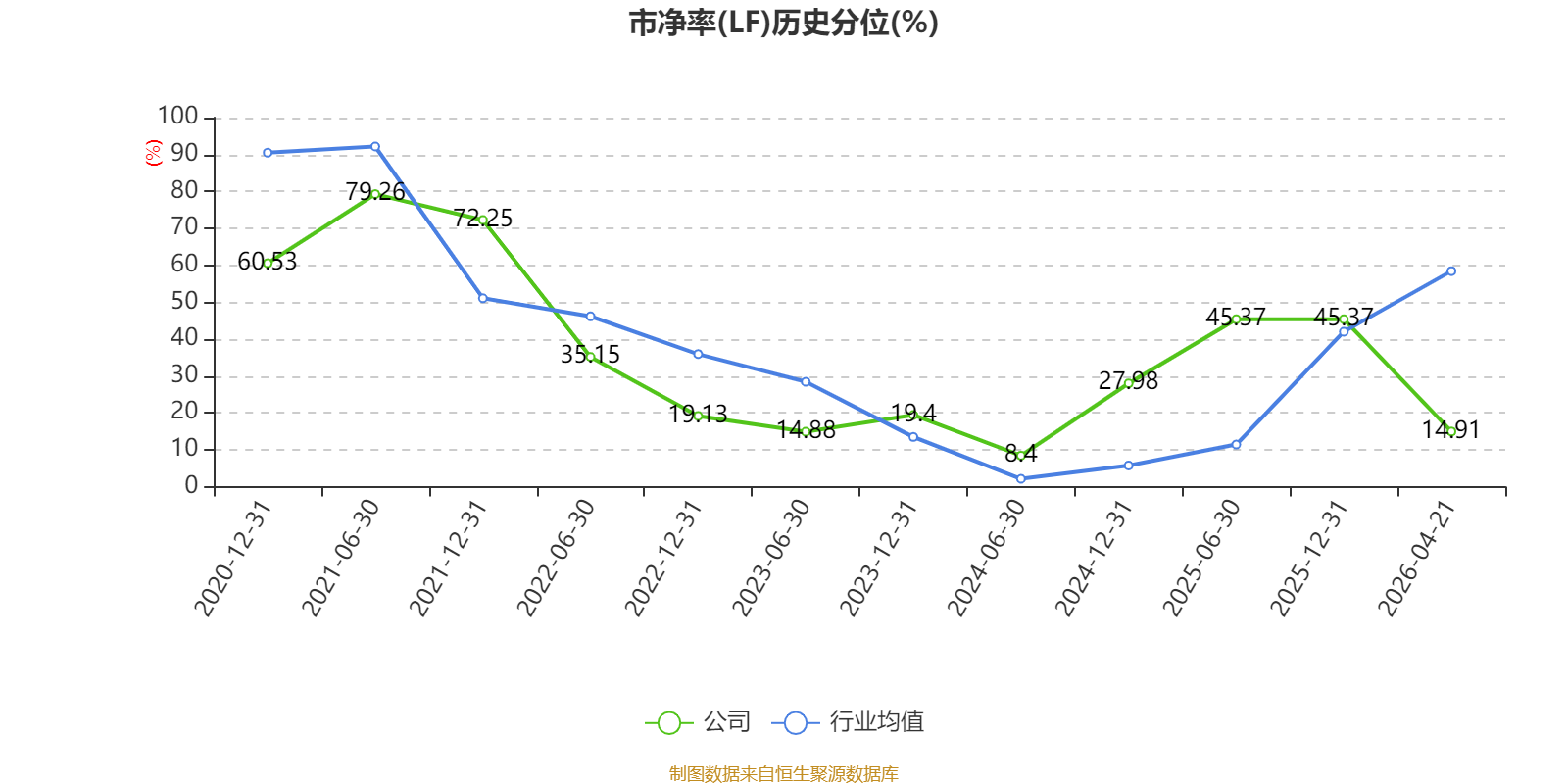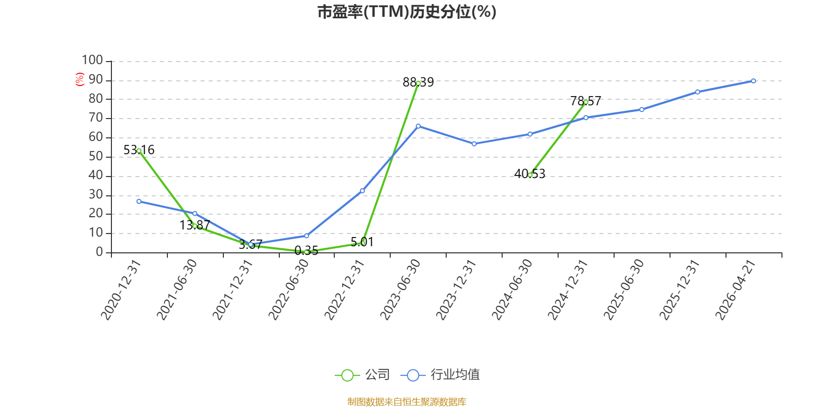 市盈率、市净率为负时,不显示当期分位数,会导致折线图中断。