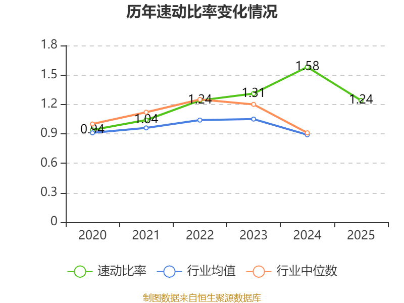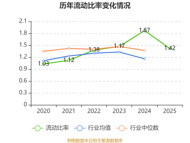 2025年,公司流动比率为1.42,速动比率为1.24。