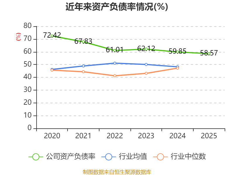 负债重大变化方面,截至2025年末,公司长期借款较上年末减少13.59%,占公司总资产比重下降5.01个百分点;一年内到期的非流动负债较上年末增加81.18%,占公司总资产比重上升4.89个百分点;应付债券较上年末减少25.16%,占公司总资产比重下降3.02个百分点;应付票据及应付账款较上年末增加51.29%,占公司总资产比重上升2.68个百分点。